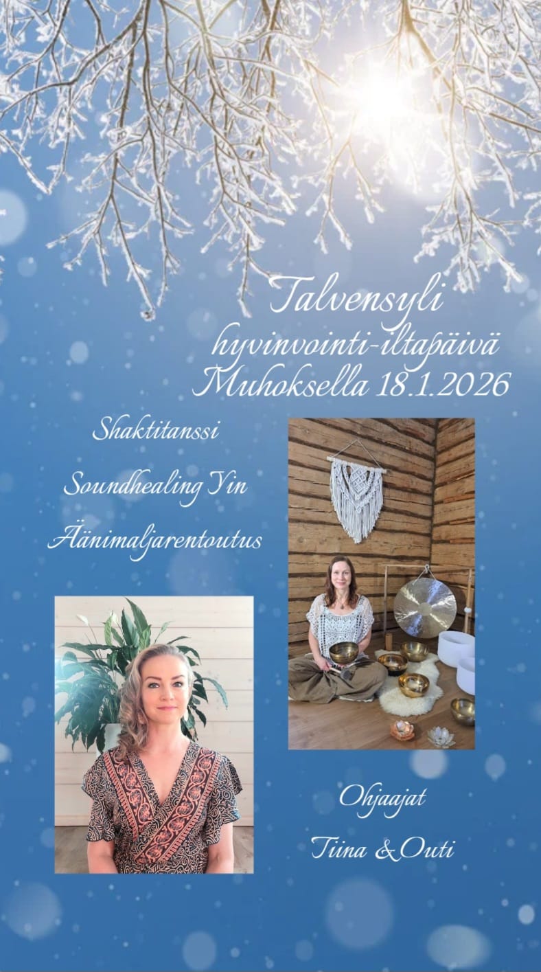 Talvensyli kutsuu sinut laskeutumaan lempeästi oman itsesi ja kehosi läsnäoloon sekä kuulemaan aidosti sisäistä sielusi viisautta. Et tarvitse aiempaa kokemusta joogasta tai tanssista. Jokainen saa olla juuri sellainen kuin on ja ilmaista itseään vapaasti turvallisessa tilassa. Nautitaan yhteisistä harjoituksista kaikilla aisteillamme, omaa kehoamme kuunnellen.